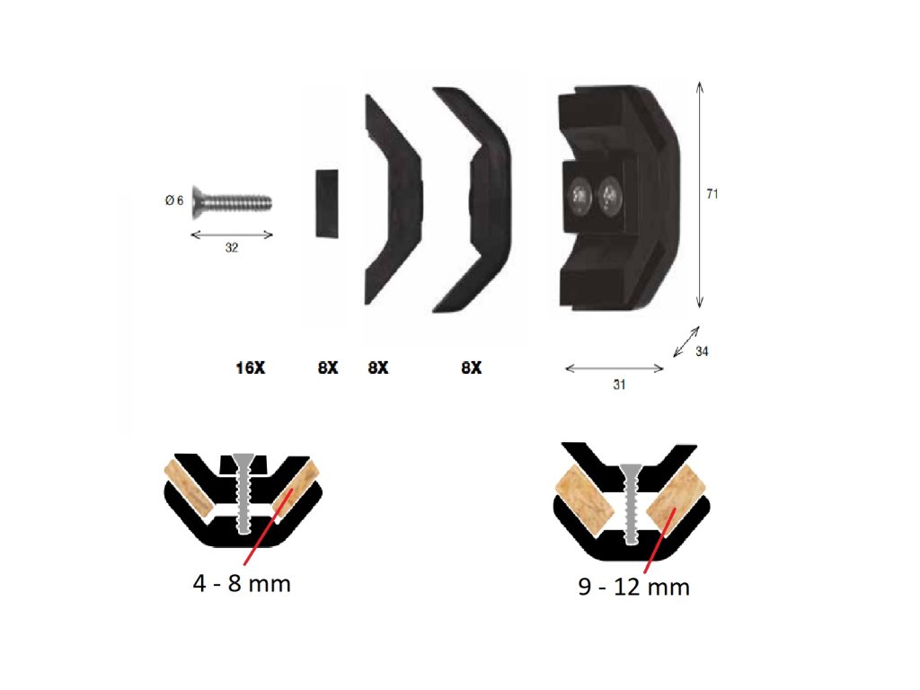 Spojka 90stupňů * rozměr 31x71mm * šroub 6x32mm * pro upevnění desek 4-12mm