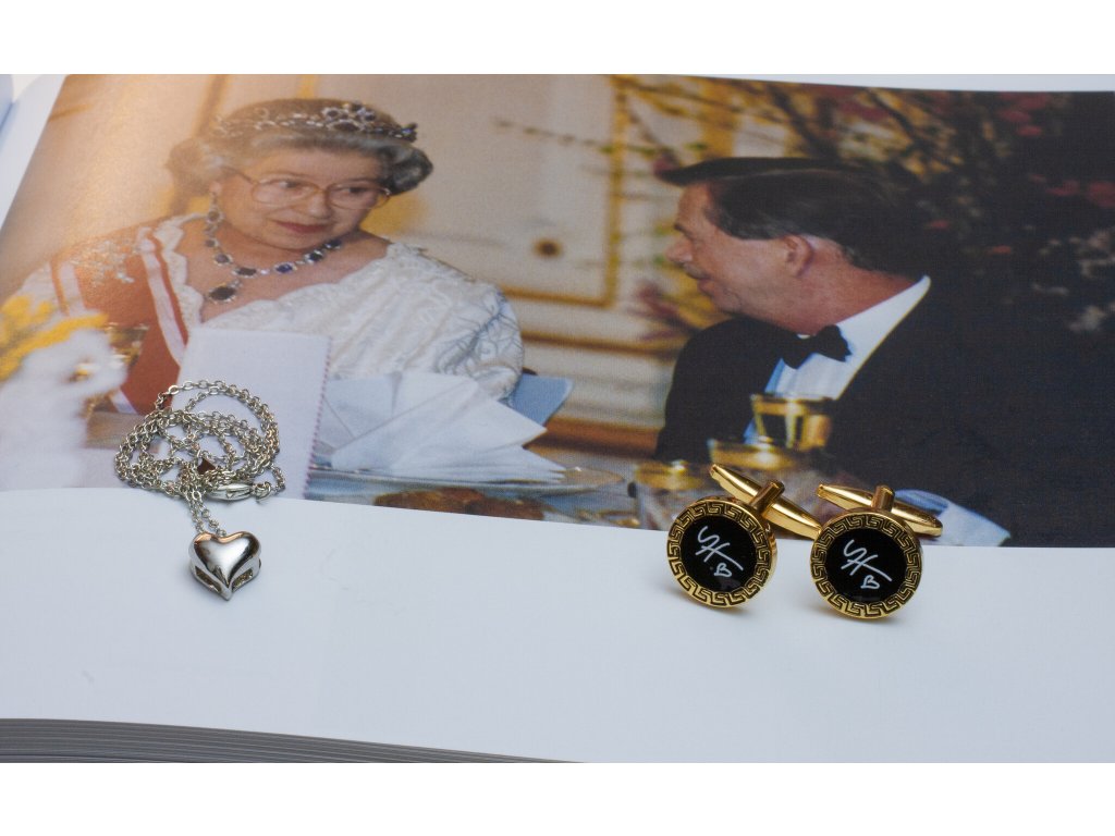 Výroba: Rhodiovaný řetízek s přívěskem ve tvaru srdce, oblíbeným symbolem Václava Havla