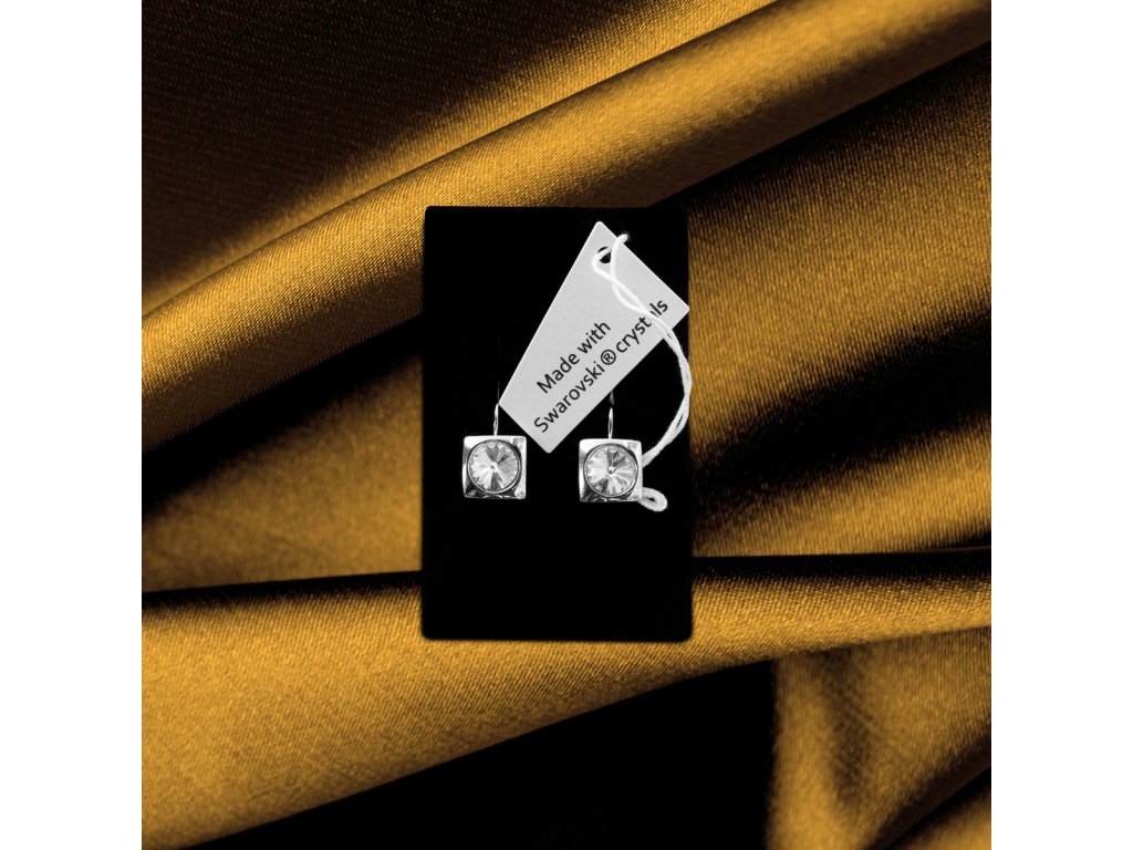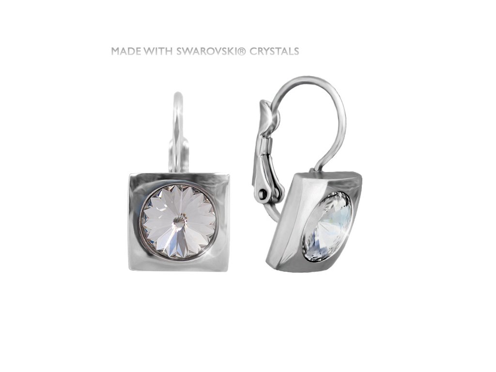 Náušnice jsou zdobeny krystaly společnosti Swarovski rivoli 8mm. Rozměr náušnic 2x1 cm. Přívěsky náušnic jsou vyrobeny z rhodiovaného ušlechtilého kovu. Dodávány na klapce.