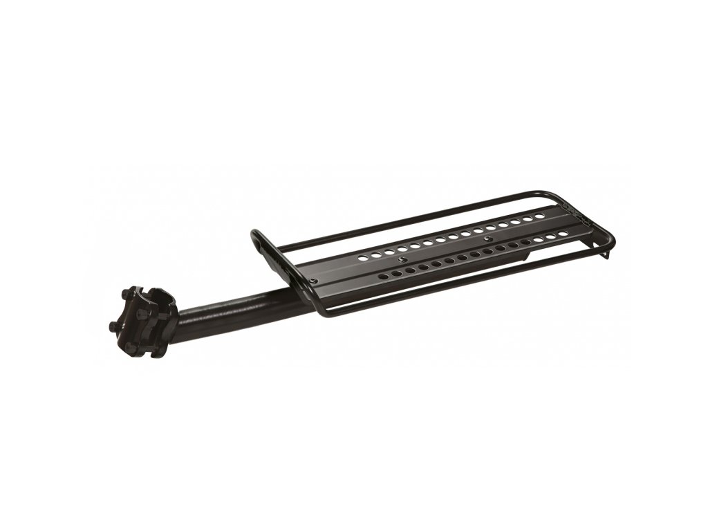 - Žádné nosičové patky? Nevadí. Sedlovkový nosič je elegantní řešení bez zásahu do rámu.