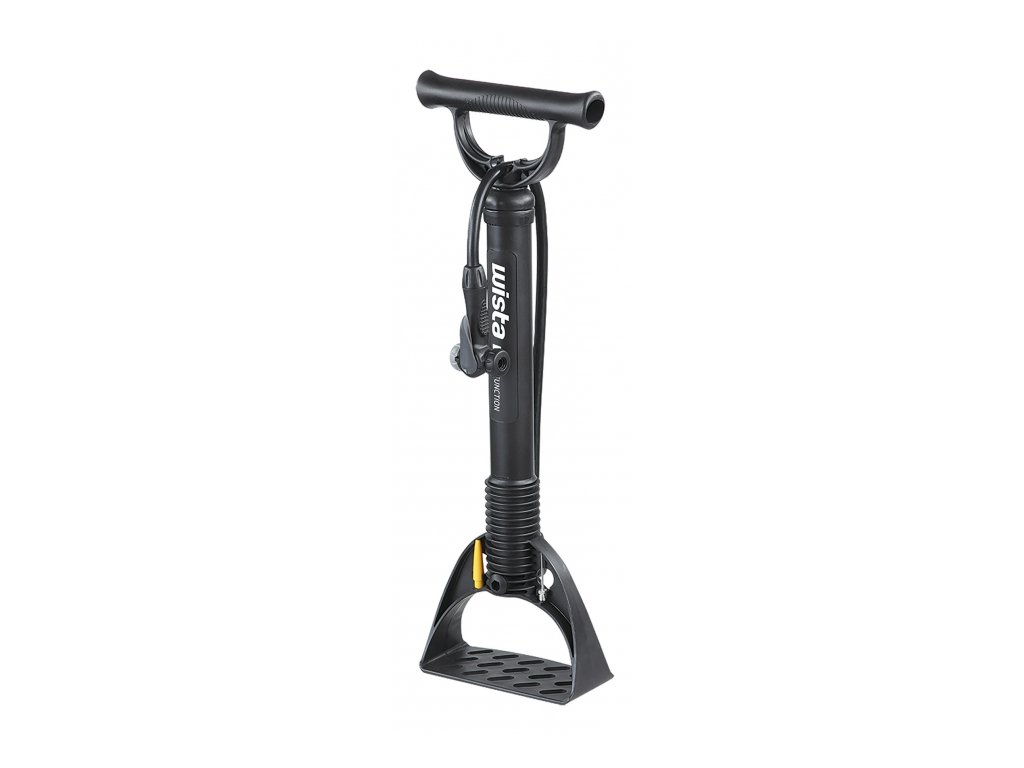 Nožní pumpa WISTA je ideální k huštení pro všechny typy cyklistických ventilků. Součástí pumpy jsou také další adaptéry, jehla pro nafukování matrací, míčů, bazénů a jako druhý adaptér je plastová redukce. boustranná opěra noh a ergonomické držadlo zajišťují opravdu snadné používání. Tato pumpa o maximální tlak je 160 PSI/11 BAR a výšce 51 cm, by neměla chybět v žádné dílně ani domácnosti. Materiál: tvrzený plast Technický popis: maximální tlak 160PSI/11 BAR oboustranná hlavice pro všechny typy ventilků AV (autoventilek), DV (klasický), FV (galuskový) součástí je také jehla pro nafukování míčů atd. a plastová redukce ergonomický tvarované držadlo oboustranná opěra noh páčka pro uzamčení hlavice k ventilku vhodá do dílny nebo do domácnosti výška 51 cm hmotnost 1kg