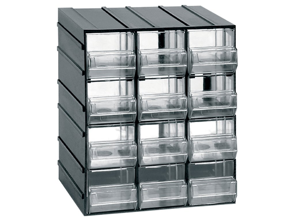 Zásuvky jsou plně výsuvné, průhledné, aby byl sortiment uvnitř rychle rozpoznán a navíc, je každá zásuvka opatřena prostorem na umístění popisu.