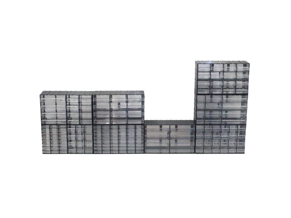Nekonečné kombinace sestav pro uložení všeho v domácnosti i v dílně. Na šroubky, na šití, pro rybáře, elektrotechniky, na korálky prostě pro všechny. Úložný multifunkční box je jedinečný svou možností vytvářet nekonečné kombinace a stavět sloupce, řady i celé stěny krabiček dle vašich potřeb. Zámkový systém na stěnách boxu umožní pevné napojení všech variant z řady ART5xx.