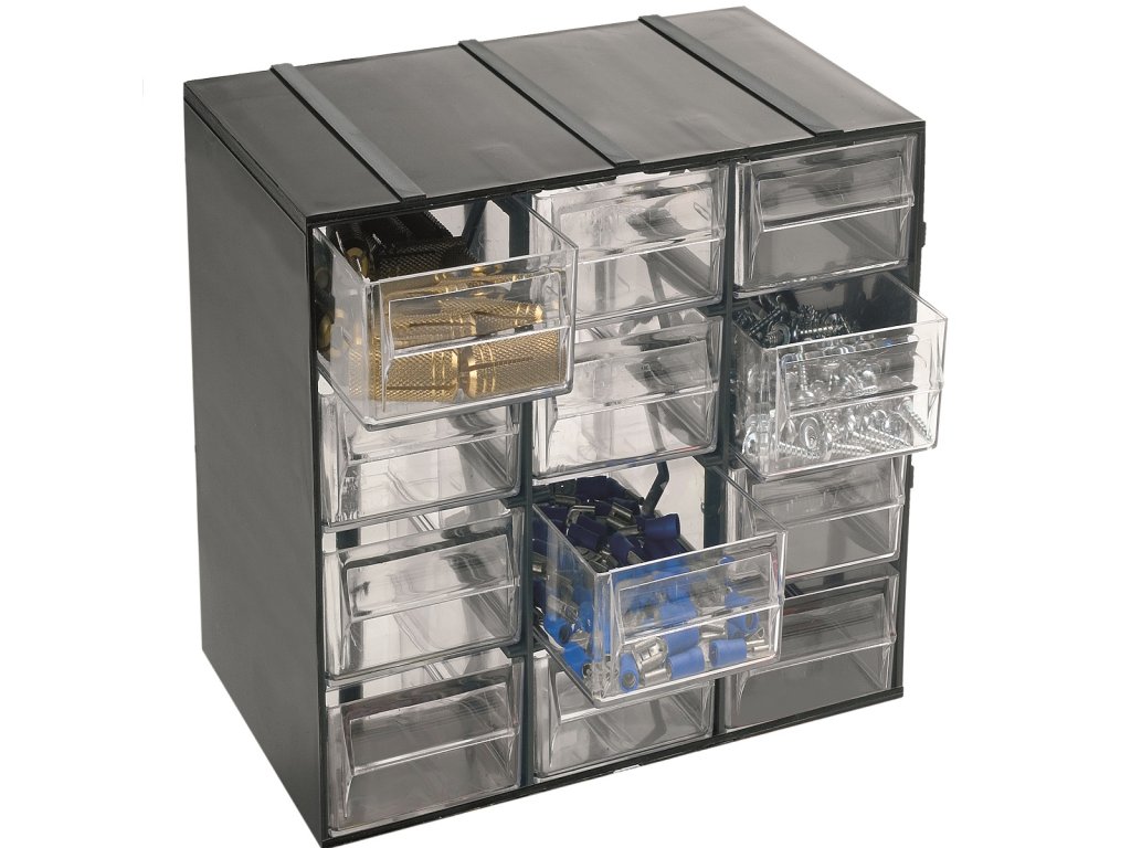Máte spoustu spojovacího materiálů, který si potřebujete přehledně zorganizovat? Není nic jednoduššího, než si pořídit zásuvkový organizér ArtPlast HOBBY 12, který lze přimontovat na stěnu. Je vyrobený z vysoce houževnatého polystyrenu v černé barvě a obsahuje 12 zásuvek o rozměrech 5,9 x 5,1 x 13,9 centimetrů. Tyto zásuvky jsou vyrobeny z krystalů polystyrenu, což je pevný a super průhledný materiál. Ideální na uložení drobných spojovacích dílů, jako jsou šroubky, matice, těsnění, nýty a podobně. Jeho celkové rozměry jsou 19 x 22,8 x 14,2 centimetrů a nosnost činí 40 kilogramů. Navíc nevyžaduje montáž.
