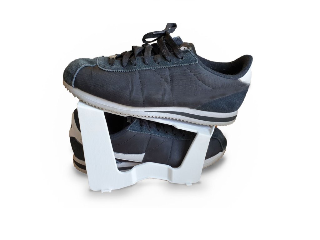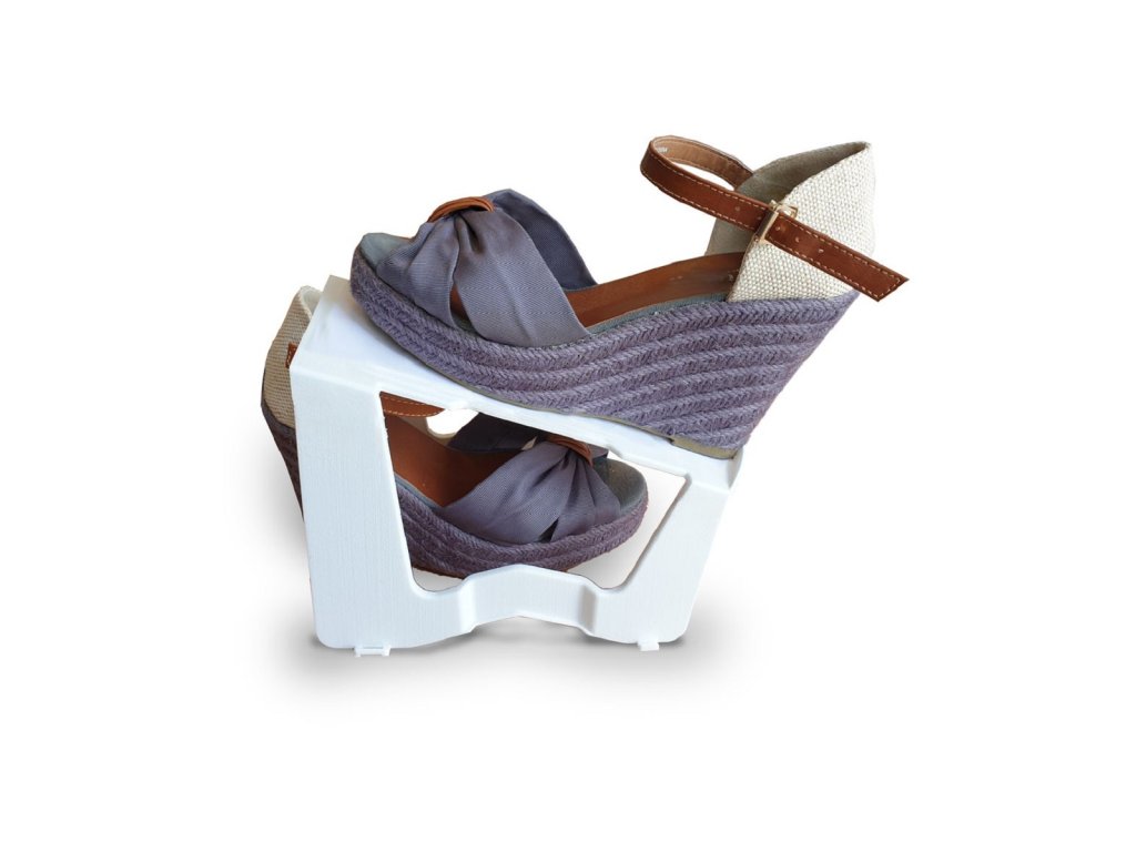 Set 3 stojanů na boty z bílého polypropylenu, každý o rozměrech 210 x 147 x 140 mm (d x v x š)