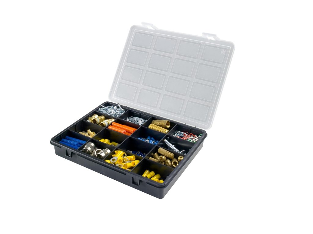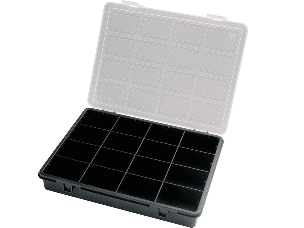 Plastový organizér se 16 přihrádkami L 242 x P 188 x H 37 mm.