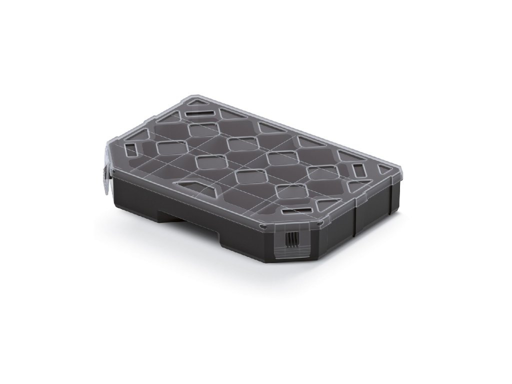 TAGER multifunkční organizér s transparetním víkem pro přehlednost uložených předmětů s vyšší odolností. Řada organizérů TAGER věnovaná profesionálům ale i kutilským nadšencům.