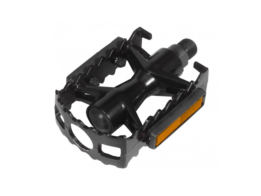 Pedály na kolo WISTA jsou vyrobeny z hliníku. Se svou odlehčenou a zároveň odolnou konstrukcí. Disponují kvalitními kuličkovými ložisky. Materiál: hliník Technický popis: celohliníkové provedení odlehčená odolná konstrukce kuličková ložiska odrazka rozměr 102x77 mm hmotnost páru pouze 360 g