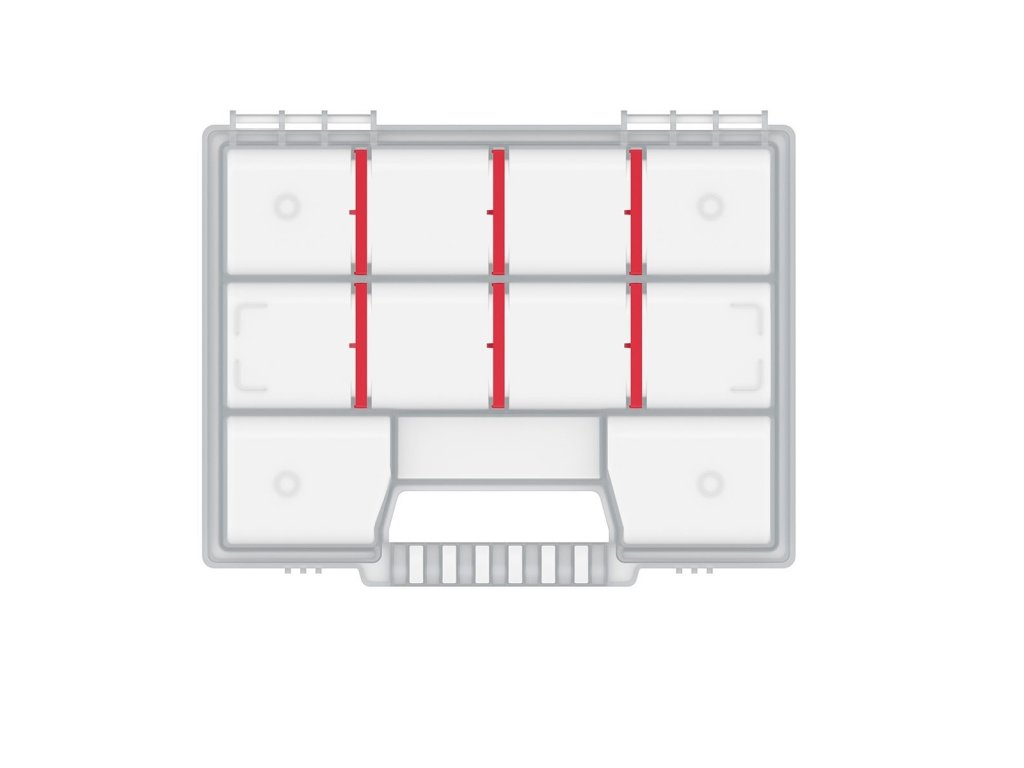 Chcete mít dokonalý přehled o vašich šroubcích, vrutech, a jiném spojovacím materiálu? Pořiďte si skvělý organizér, který je vyrobený z kvalitního plastu a navíc je celý i s plastovou rukojetí v transparentním provedení. Má velmi moderní design, který znásobuje svoji praktičností. Disponuje 10 přihrádkami.