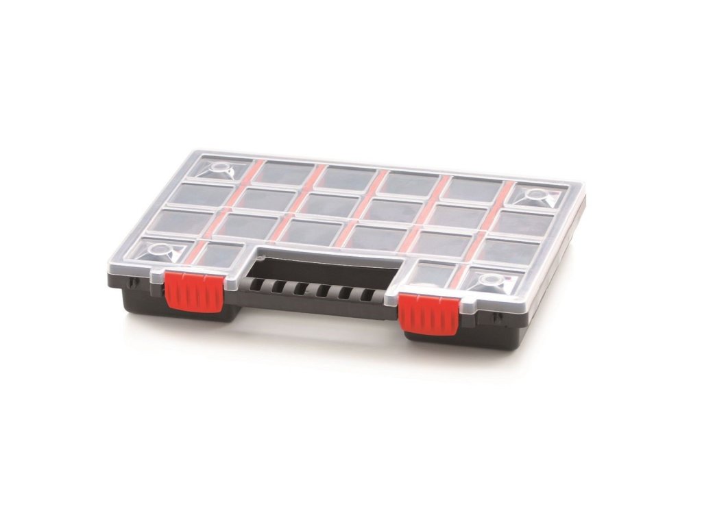 Organizér KISTENBERG s nastavitelnými příčkami vhodný na šroubky, podložky, těsnění, bity a jiné drobné věci. Všestranné využití v domácnosti a dílnách. Organizér má rozdělené jednotky k snadnější a přehlednější organizaci vašich drobností. Navíc má transparentní víko pro okamžitý přehled a plastovou rukojeť na pohodlné přenesení.