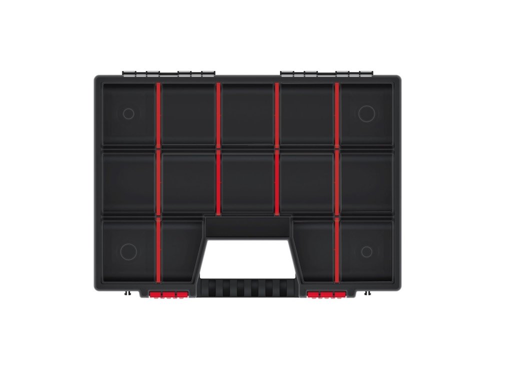 Potřebujete mít drobnosti jako jsou šroubky, vruty, vrtáky a podobné drobnosti po ruce? Pořiďte si organizér, který vám to umožní. Navíc má transparentní provedení, proto už nikdy nic nebudete hledat. Okamžitě uvidíte kolik máte spojovacího materiálu nebo něčeho jiného. Organizér je opatřen plastovou rukojetí pro snadný přenos a nastvitelnými přihrádkami.
