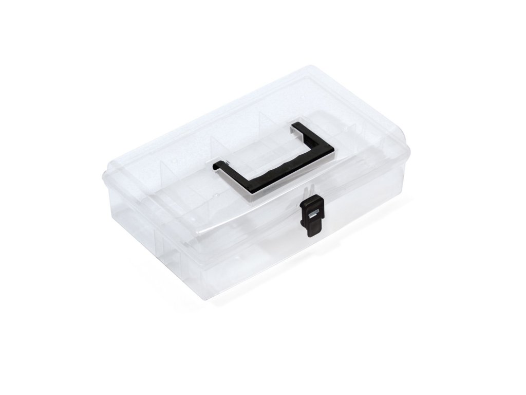 Organizér v transparentním provedení na uložení šroubků, hřebíků, podložek apod. Ale i k uskladnění rybářských potřeb. Můžete ho použít v dílně i doma. Obsahuje čtyři malé přihrádky a jednu velkou. Je uzavíratelný plastovým klipem a přenesitelný pomocí plastové rukojeti.