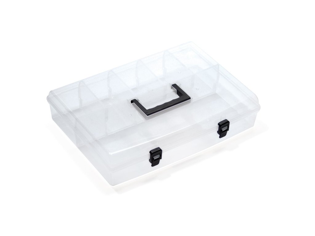 Všestranný organizér obsahuje pět malých přihrádek a jednu velkou. Slouží k organizaci drobných věcí. Můžete do něj dát šroubky, vruty, vrtáky apod. Ale i korálky, věci na rybaření a jiné drobnosti. Je opatřen plastovou rukojetí a dvěma klipy v černém provedení. Organizér je uzavíratelný a protože má transparentní provedení máte neustále přehled co v něm máte.