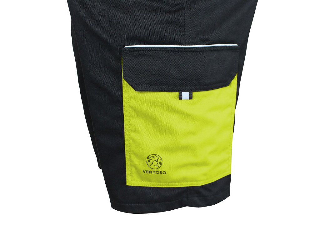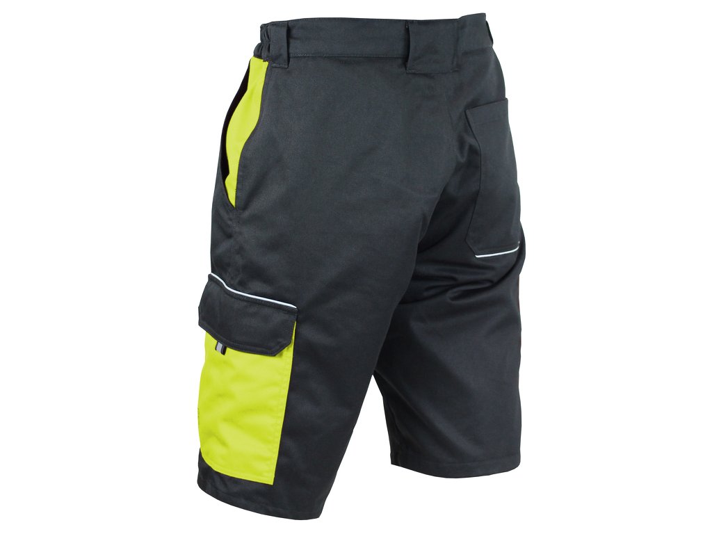 Pánské montérkové kraťasy, poutka na opasek, multifunkční kapsy na obou stranách, kaspa na zadní straně, reflexní doplňky, ergonomický střih, vyrobeno z bavlny a polyesteru.