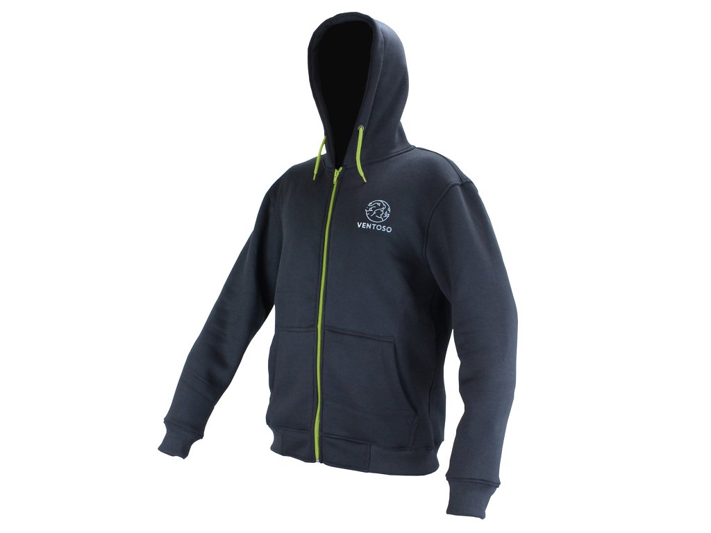 Pracovní mikina z bavlny a polyesteru, elastické zakončení pasu a rukávů, kapuce se stažením na šňůrku, klokaní kapsa, průběžný zip, barva zelená/černá