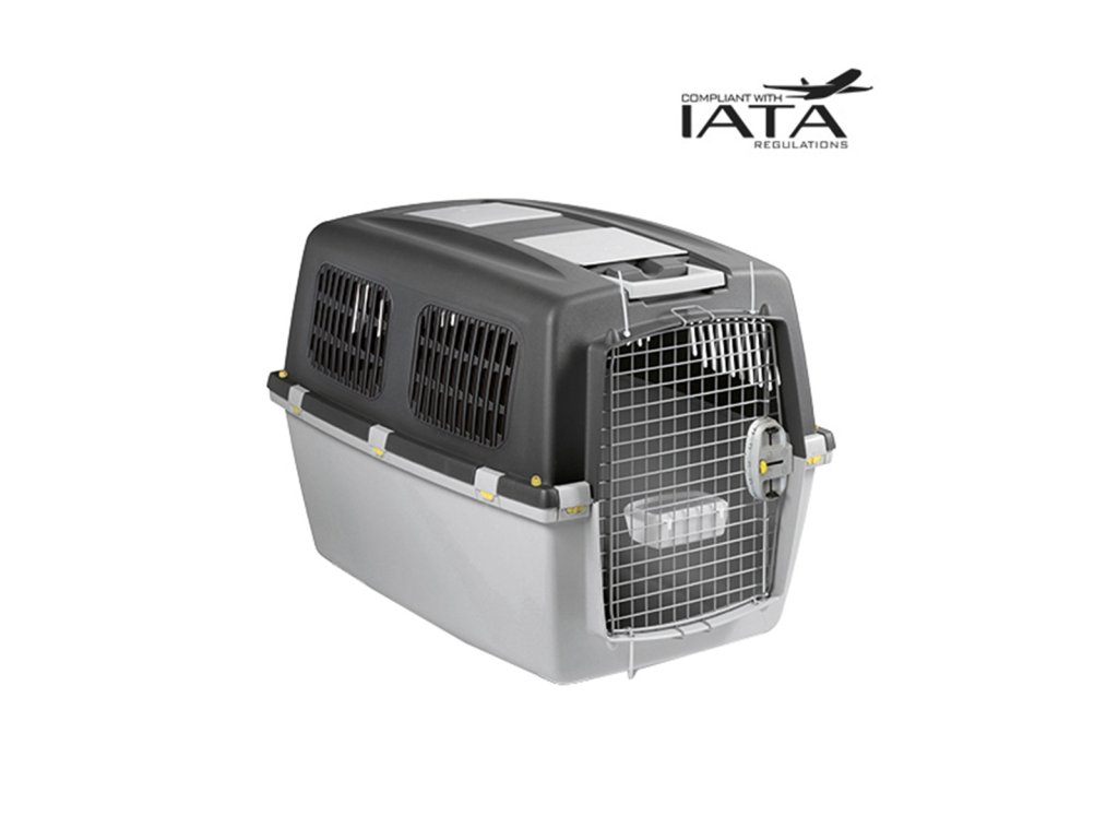 Přepravka Gulliver 6 IATA je určena pro psy a kočky do 38 kg. Rozměry 64x92x64cm, kovová dvířka, bezpečnostní klipy, 2 horní přihrádky a zásobník na vodu. Schválena pro leteckou přepravu. Zahrnuje sadu IATA pro cestování letadlem.