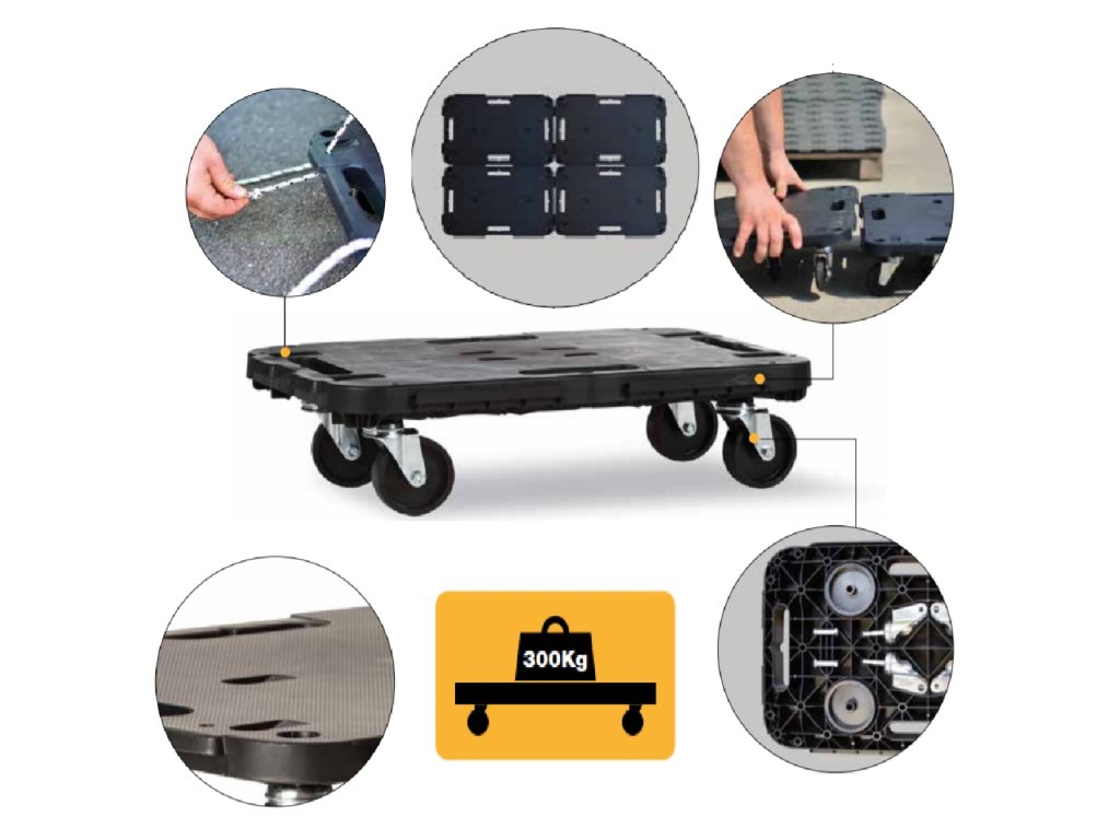 ART PLAST přepravní plošina s nosností do 300 kg určená k přesouvání či stěhování rozličných předmětů. Díky své vysoké nosnosti vhodná i na přemisťování stavebních materiálů. Najde své využití jak v domácnosti, tak i v dílně či garáži. Plošina je optařena 4 otočnými kolečky a madly na 4 stranách pro lepší manipulaci.