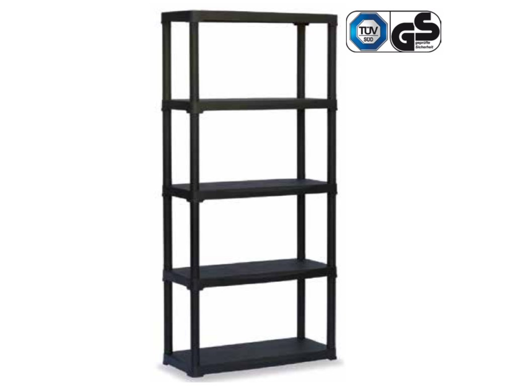 Díky plastovému provedení je výjimečně univerzální a úspěšně jej můžete používat v dílně, garáži, sklepě, domech a na zahradě. Použitý plast přispívá k tomu, že regál je výjimečně lehký. Jeho hmotnost je pouze 5,8 kg, takže jej snadno přenesete na jiné místo. Navíc regál nepohlcuje nepříjemné pachy a lze jej snadno vyčistit. Skládá se z 5 polic, které jsou opatřeny křížovými spoji – toto řešení zvyšuje tuhost celé konstrukce Každá z nich má nosnost dosahující až 20 kg.