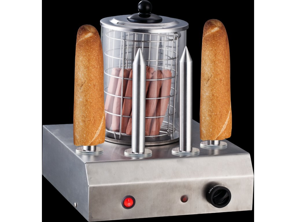 Nerezové tělo přístroje Kovové trny pro současné rozpečení 4 kusů pečiva Pozvolná příprava párků v páře Skleněná nádoba (? 20 cm) s nerezovým košíkem Nastavitelný termostat (30 – 100 °C) Ideální také pro vaření vajec a kukuřice Snadná údržba Příkon 600 W