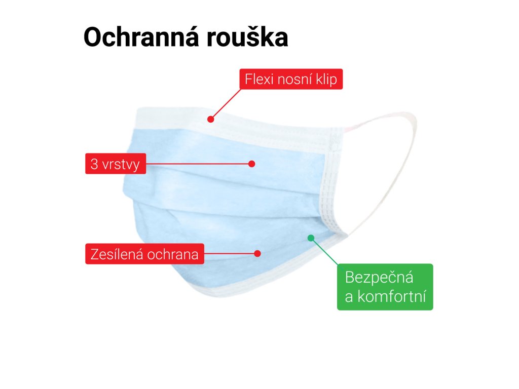 Ústní roušky jsou základní ochranou dýchacích cest. Roušky pravidelně měňte a mějte na paměti že účinnost jakékoliv ústní ochrany se snižuje čím více je rouška navlhlá. Dbejte i na správné nasazování a nošení roušky.