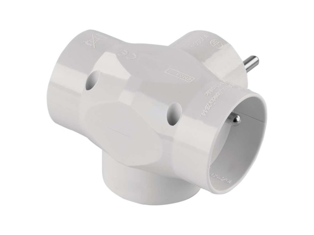 Nejdůležitější parametry * produkt:rozbočovací zásuvka 3× * počet zásuvek : 3× 2P + PE * napětí/proud:250 V~/16 A max. * krytí:IP20 * vypínač: ne * barva : bílá