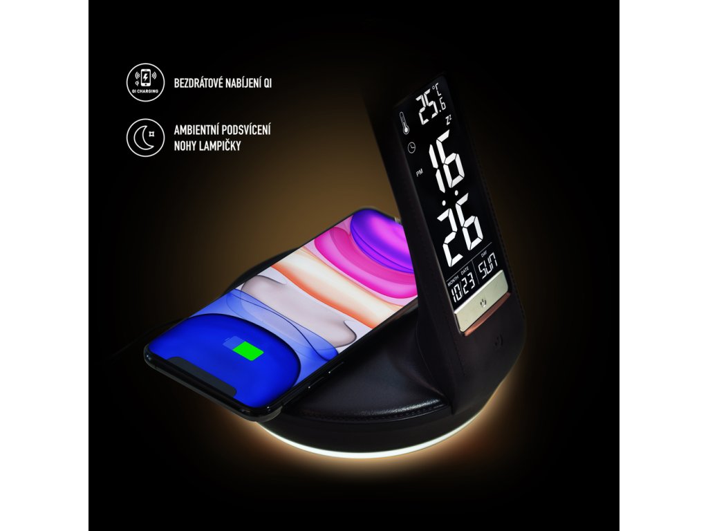 - Bezdrátové nabíjení Qi – položíte telefon na základnu a nabíjíte bez kabelů (kompatibilní se zařízeními s Qi).