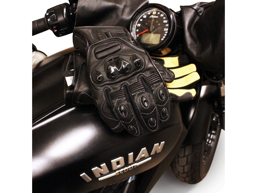Rukavice moto SOCHI pánské kožené dlouhé černá/béžová M