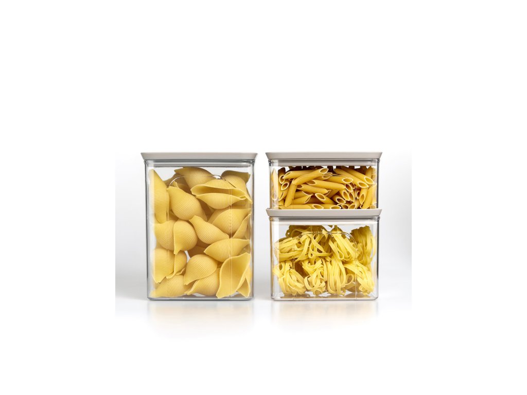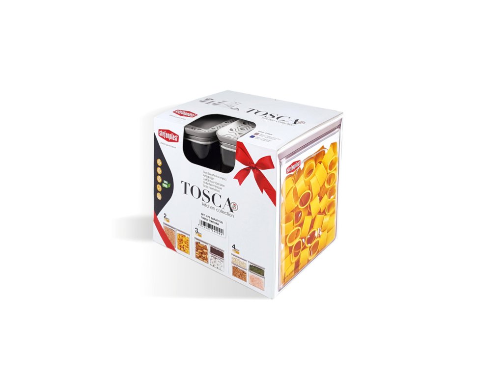 Sada tří obdélníkových dóz Tosca od značky Stefanplast je skvělým pomocníkem pro organizaci domácnosti. Dózy jsou vyrobeny z odolného plastu, každá je opatřena pevným víčkem, které chrání obsah před vlhkostí a nečistotami. Díky obdélníkovému tvaru efektivně využijí prostor v lednici, skříňce nebo spíži. Různé velikosti umožňují skladovat širokou škálu potravin, od těstovin přes oříšky až po drobné kuchyňské potřeby. Elegantní vzhled kolekce Tosca dodává i praktickým dózám styl.