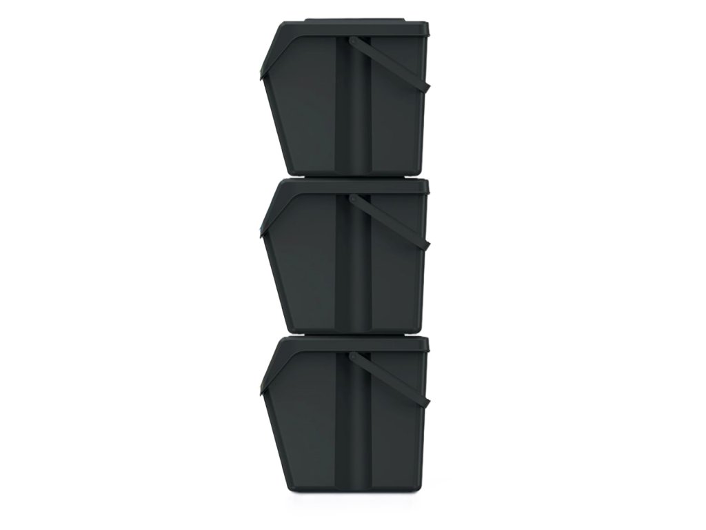 Sada 3 košů na třídění odpadu barva: recyklovaně černá 3x25L Sortibox. Jsou modulární, takže je lze volně skládat na sebe. Jsou vyrobeny z odolného plastu ABS.