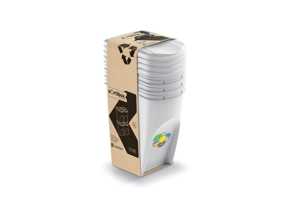 Sada 4 odpadkových košů SORTIBOX popelavý, objem 4x35L