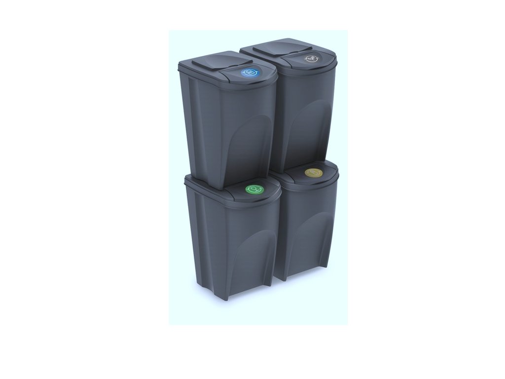 Sada 4 odpadkových košů SORTIBOX recyklovaná černá, objem 4x35L