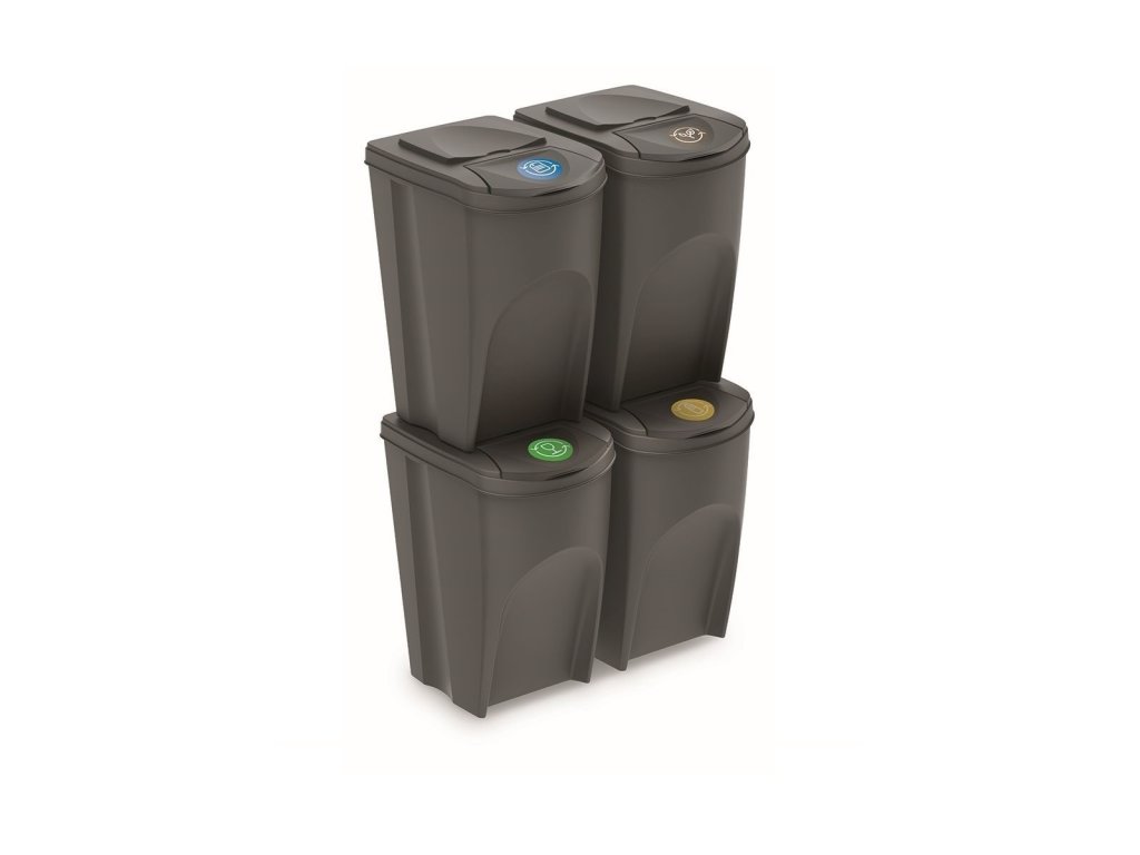 Sada 4 odpadkových košů SORTIBOX šedý kámen, objem 4x35L