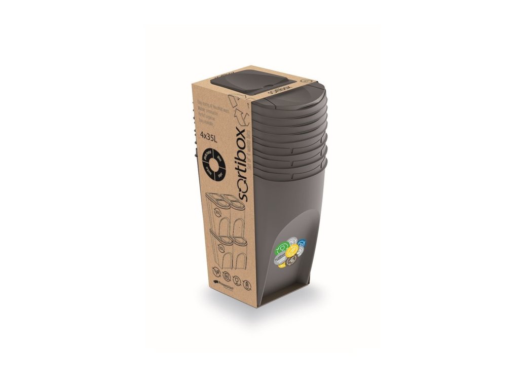 Označená víka Vám pomohou rozeznat druh odpadu a zabrání šíření zápachu. Vysoce adhezivní samolepky pro označení druhu odpadu na jednotlivá víka jsou součástí balení. U SORTIBOXU oceníte jeho rychlou dostupnost, pohodlné vyprazdňování i snadné čištění. Jednotlivé boxy je možno variabilně seskládat na sebe či vedle sebe.