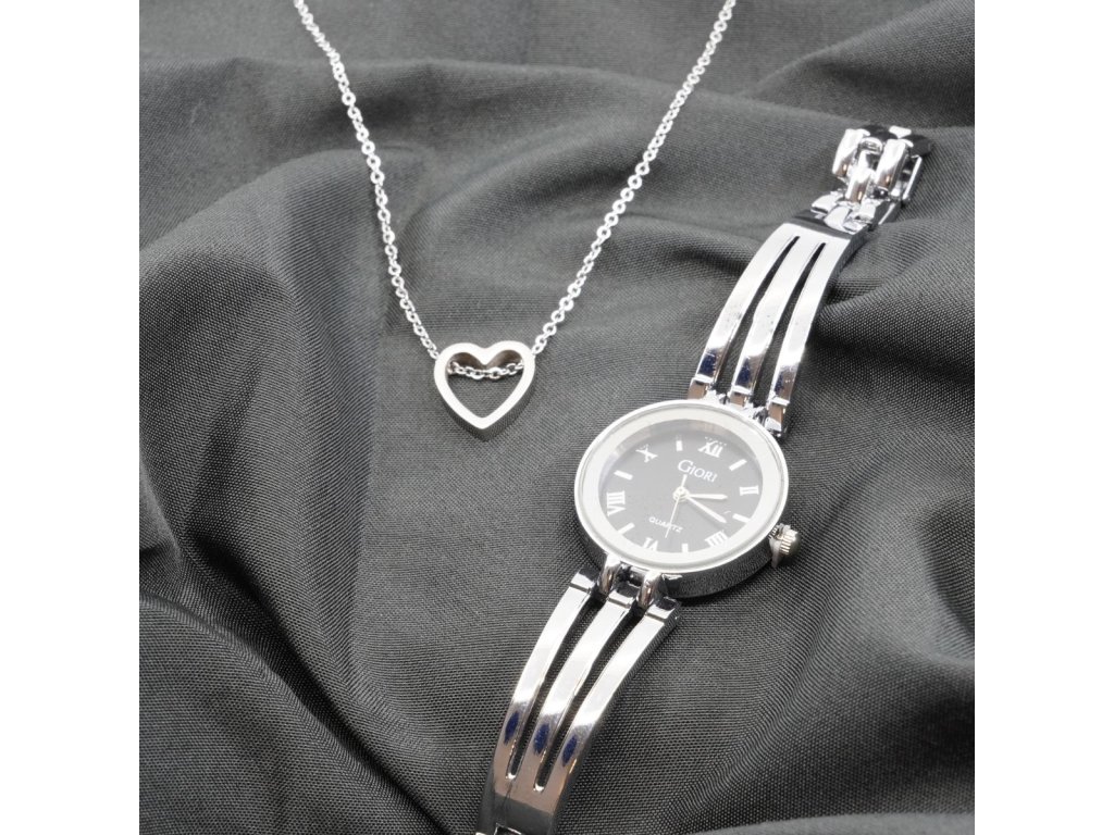 Sada dámská GIORI: Hodinky + řetízek s přívěskem srdce