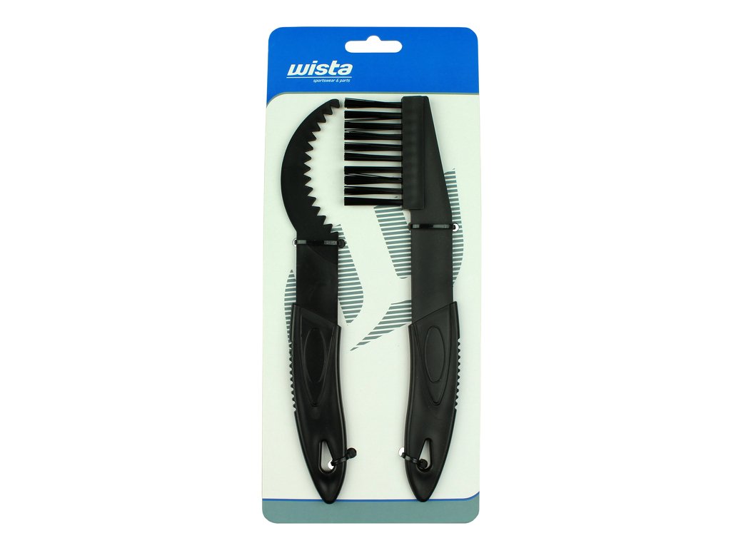 Sada na čištění řetězů WISTA je skladná pomůcka pro snadné a rychlé vyčištění řetězu a řetězových koleček. Dlouhá životnost díky nylonovým štětinám a odolnému plastu. TECHNICKÝ P PIS: univerzální vhodný pro běžné rozměry řetezů 2 ks - škrabka a kartáč Materiál: ABS plast