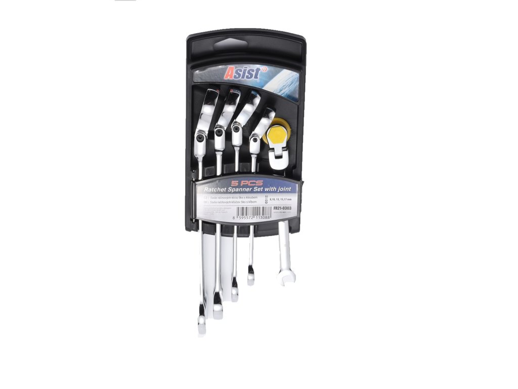 Sada ráčnových klíčů 5 ks s kloubem – kompaktní a odolná sada pro rychlé utahování i povolování v těsných místech bez neustálého sundávání klíče z matice. Ideální pro servis, montáže i domácí dílnu.