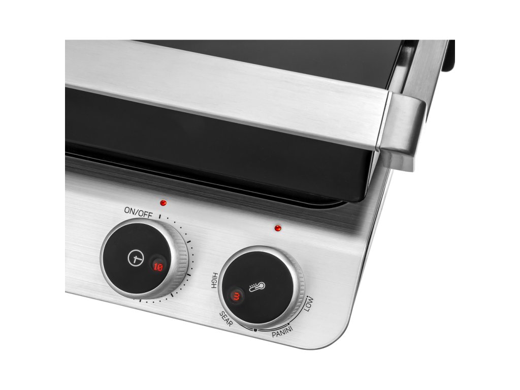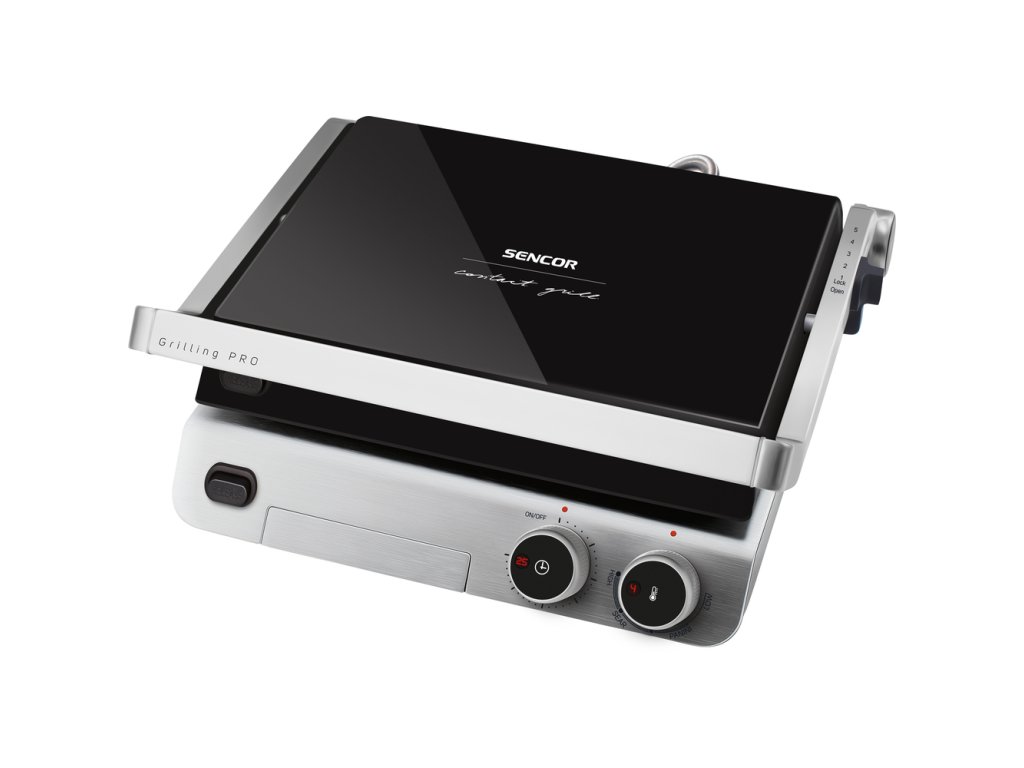 Příkon 2 000 W, rozměry grilovací desky 30 x 25 cm, automatická regulace teploty, grilovací desky vhodné do myčky