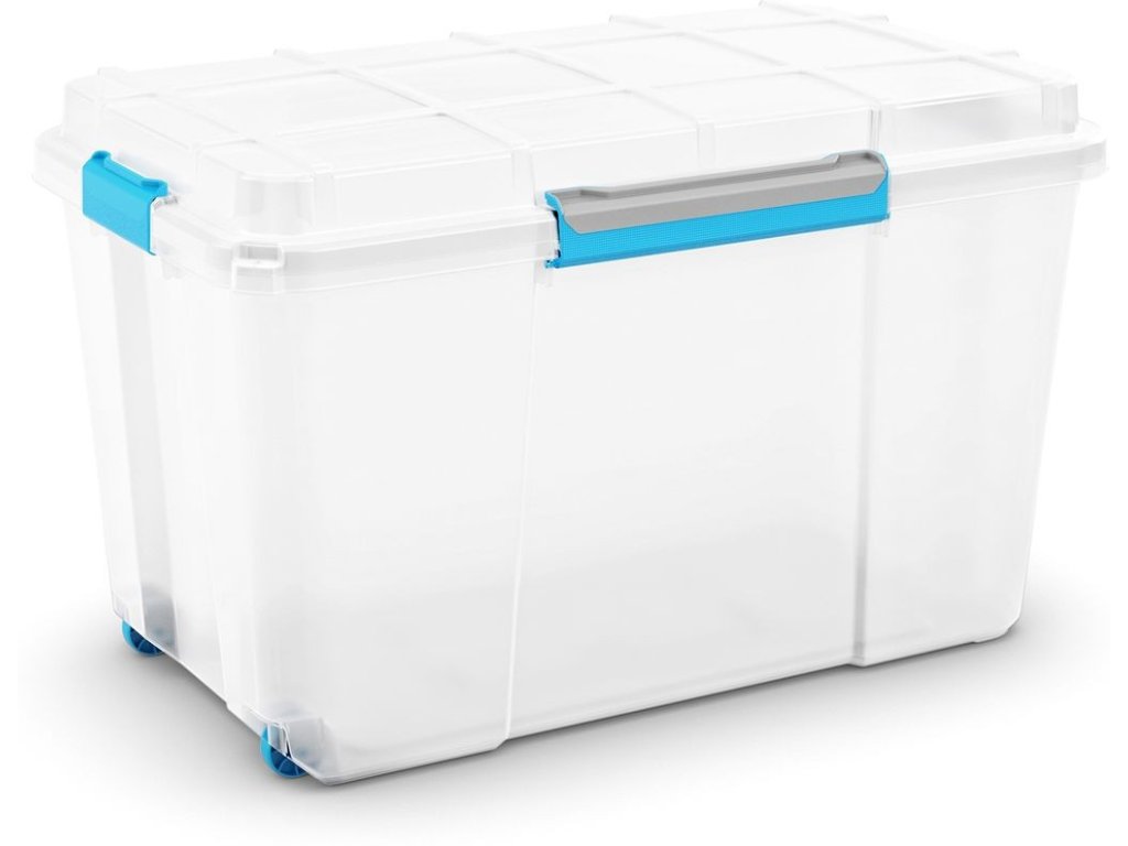 Multifunkční, extra odolný, úložný Scuba box XL značky KIS má objem 106 litrů, pomůže s uskladněním mnoha věcí. Box je opatřen kolečky pro snadné přesouvání i plného boxu. Vyroben z vysoce kvalitního a lehce omyvatelného plastu, s bezproblémovou údržbou. Odolný vůči nárazům, nízkým teplotám a kyselinám. Víko je opatřeno čtyřmi klipovými ergonomickými uzávěry a navíc je hermeticky uzaviíratelné, nepropustí žádnou vlhkost. Barvu má transparentní, s modrými uzávěry.
