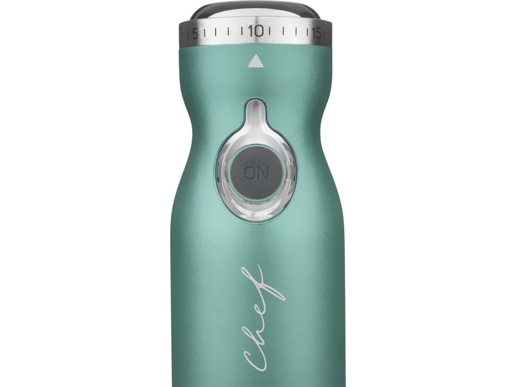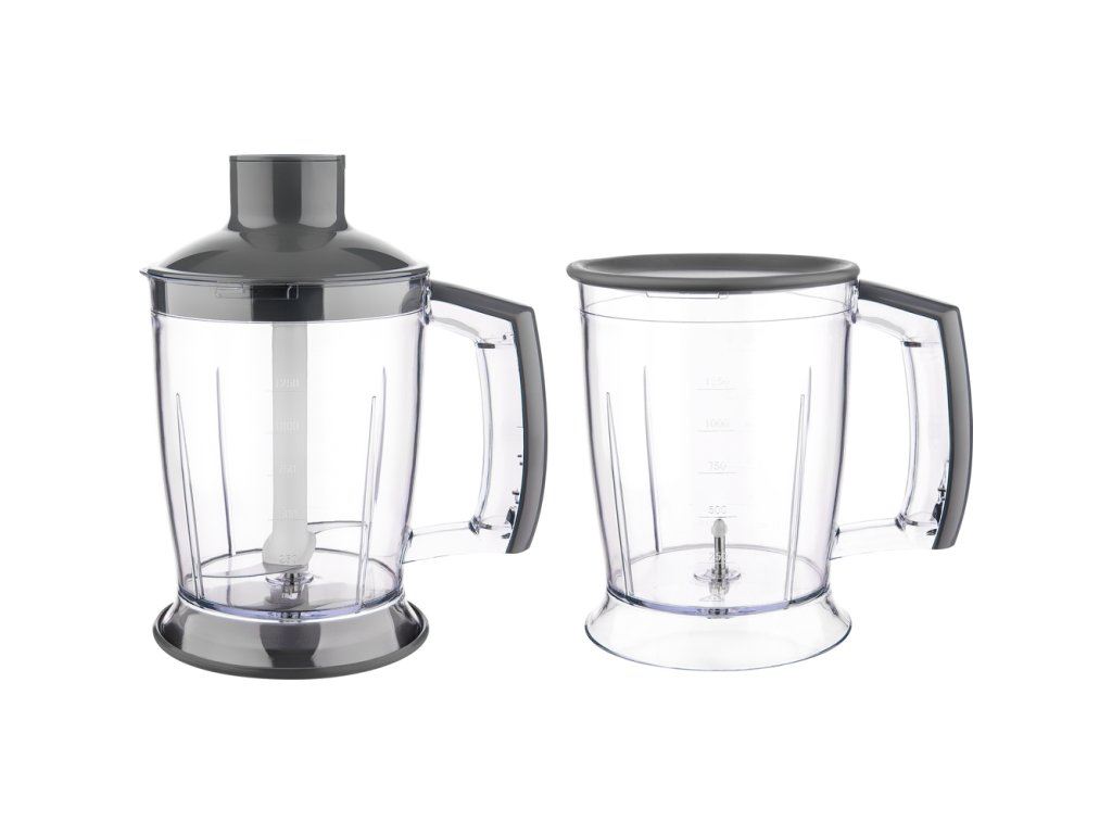 - Tvarovaná mixovací hlava s ochranou proti rozstřiku – čistější kuchyň a pohodlné mixování přímo v nádobě nebo hrnci.