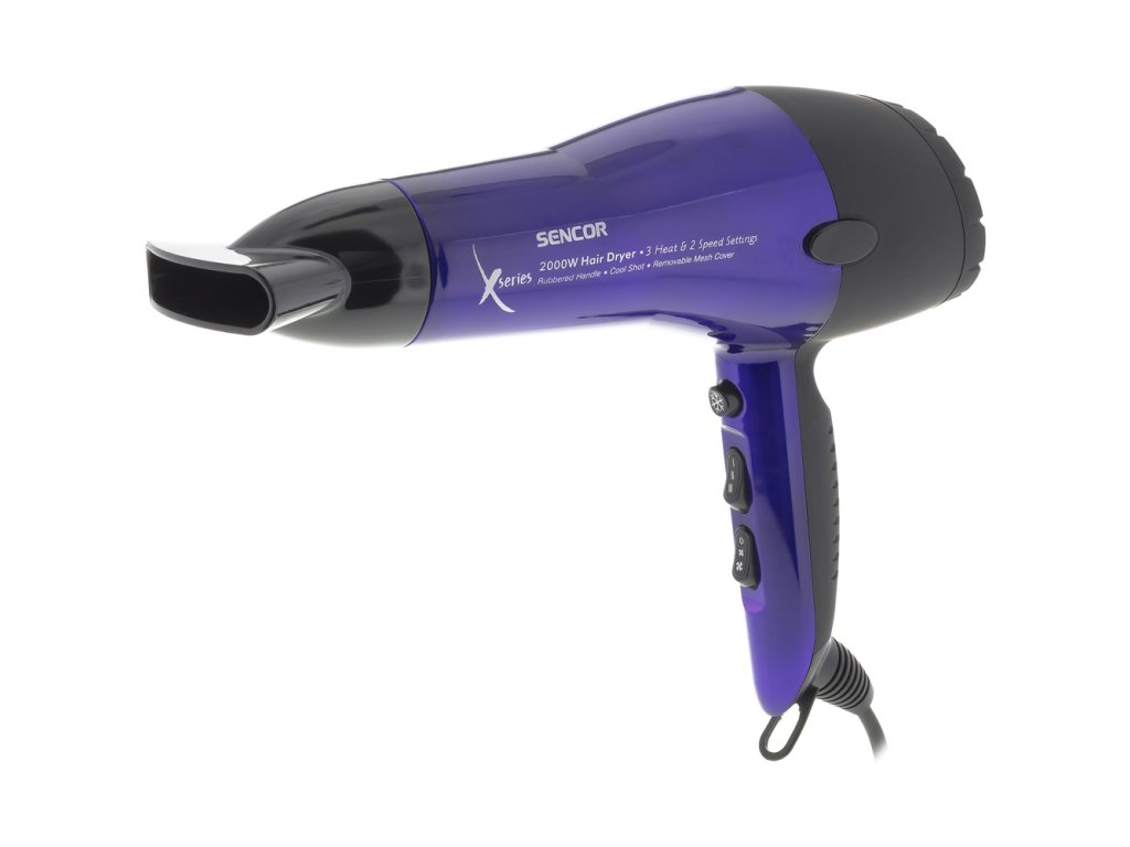 Vysoušeč vlasů kombinuje sytou lesklou modro fialovou barvu s černým plastem. Přístroj je určený do domácnosti i kadeřnického salónu. Příkon je 2000 W a velice lehká konstrukce vás jistě potěší. Tři stupně nastavení teploty a dva stupně nastavení rychlosti umožní variabilní nastavení vysoušeče.Vzduchová tryska i tlačítko studeného vzduchu usnadní rychlé sušení vlasů i modelování účesů. Odnímatelná zadní mřížka zajistí pohodlné čištění přístroje. Pogumovaná zadní část rukojeti přispívá ke komfortní práci. Závěsné očko umožní snadné uložení vysoušeče.Gumové ochranné boční nárazníky spolehlivě zabraní odření fénu při jeho opakovaném odkládání. Tepelná pojistka proti přehřátí motoru předejde úrazu nebo poškození přístroje. Délka přívodní šňůry je 2 6 m.Doufáme že přístroj bude odpovídat vašim požadavkům a přáním. Technické parametry Příkon 2000WUltralehká konstrukce3 stupně nastavení teploty2 stupně nastavení rychlostiVzduchová tryskaTlačítko studeného vzduchuOdnímatelná zadní mřížka pro snazší čištěníPogumovaná zadní část rukojetiZávěsné očkoGumové ochranné boční nárazníky zabraňující odření fénu při odloženíTepelná pojistka proti přehřátí motoruDélka přívodní šňůry: 2 6 m