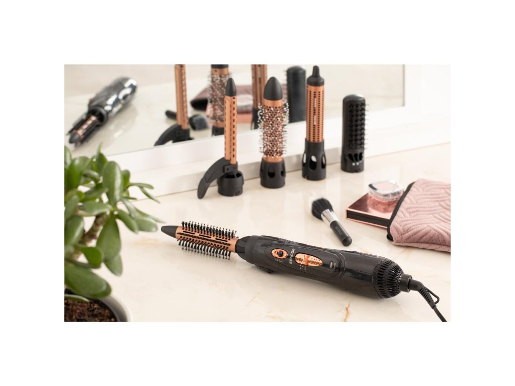 - Styling a sušení v jednom: proud horkého vzduchu tvaruje účes a zároveň vlasy dosuší – méně času, více lesku.