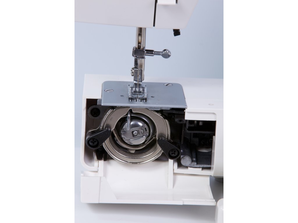 vertikální kyvný chapač zajišťující profesionálně přesné šití všech stehů prostorná dvířka krytu pouzdra cívky a chapače pro snadnou manipulaci s pouzdrem cívky i čištění okolního prostoru velký kryt volného ramene rozšiřující pracovní plochu a zvyšující pohodlí při šití zejména náročných materiálů, s vnitřní velkou schránkou na příslušenství pohodlný ovladač zpětného chodu moderní, vysoce účinné a úsporné LED osvětlení pracovní plochy robustní konstrukci stroje a jeho snadnou stabilizaci na stole díky stavitelné noze poctivé kovové prvky stroje projevující se i v jeho vyšší celkové váze 8,6 kg dokonalý výběr z 22 šicích programů a 19 stehů zahrnujících jak pružné, tak dekorativní stehy. Z pružných stehů jmenujme trojitý přímý, trojitý klikatý, jednostranně uzavřený overlockový pro moderní obrubování materiálů i jejich sešívání Vyobrazení zcela nových dekorativních stehů včetně slepého připravenost stroje pro šití dvojjehlou – již základní výbava zahrnuje jak kolík dvojjehly, tak i dvojjehlu. Stále oblíbenější šití dvojjehlou se používá na dekorativní šití a především půvabné vyšívání barevně zajímavých vzorů. spolehlivé 4krokové šití knoflíkové dírky, plynulé nastavení délky stehu 0 - 4 mm, automatické nastavení tlaku přítlačné patky, nastavitelné napětí horní nitě, snadnou výměnu přítlačné patky pouhým zaklapnutím a automatické navíjení spodní cívky. nový moderní úsporný motor o příkonu 70 W s dlouhou životností a minimálními nároky na údržbu Rozměry (ŠxHxV): 43 x 23 x 35 cm Váha stroje: 8,6 kg