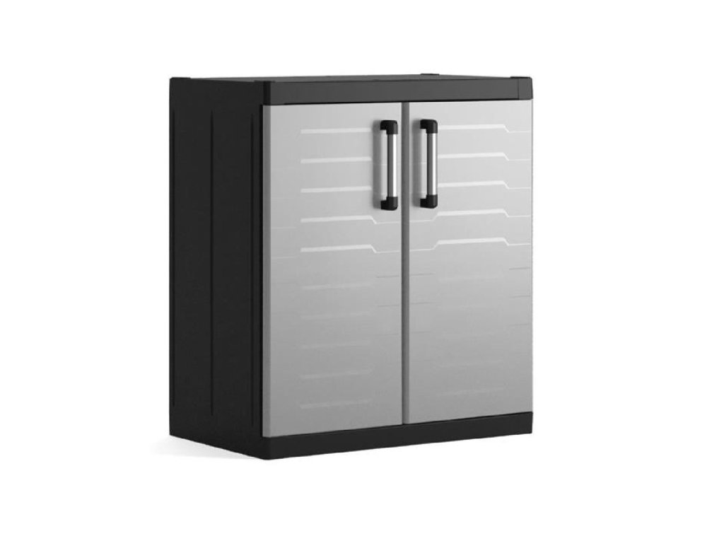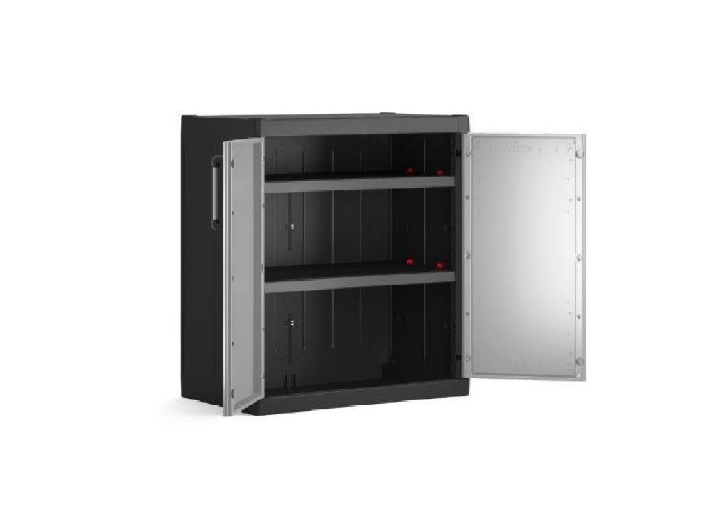 Skříň je vyrobena z velmi odolného polypropylenu, který odolá styku s oleji nebo rozpouštědly. Materiál nepohlcuje vlhkost ani pachy, proto je vhodný i do prostor s vyšší vlhkostí, je odolný proti plísním, omyvatelná a snadno se udržuje. Polypropylen rovněž vykazuje vyšší odolnost proti nárazům. Skříň je uvnitř vybavena 2 policemi s nastavitelnou výškou. Nosnost každé police je 15 kg. Skříň je připravena na možnost uzamčení.