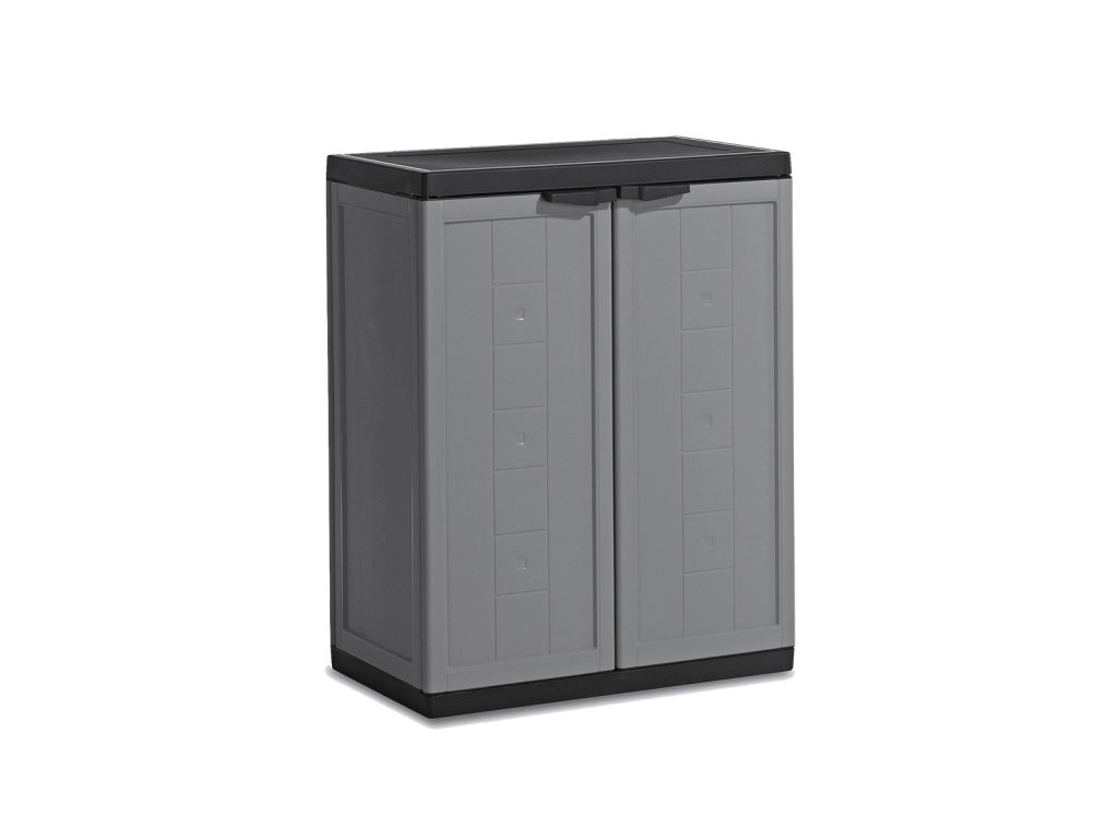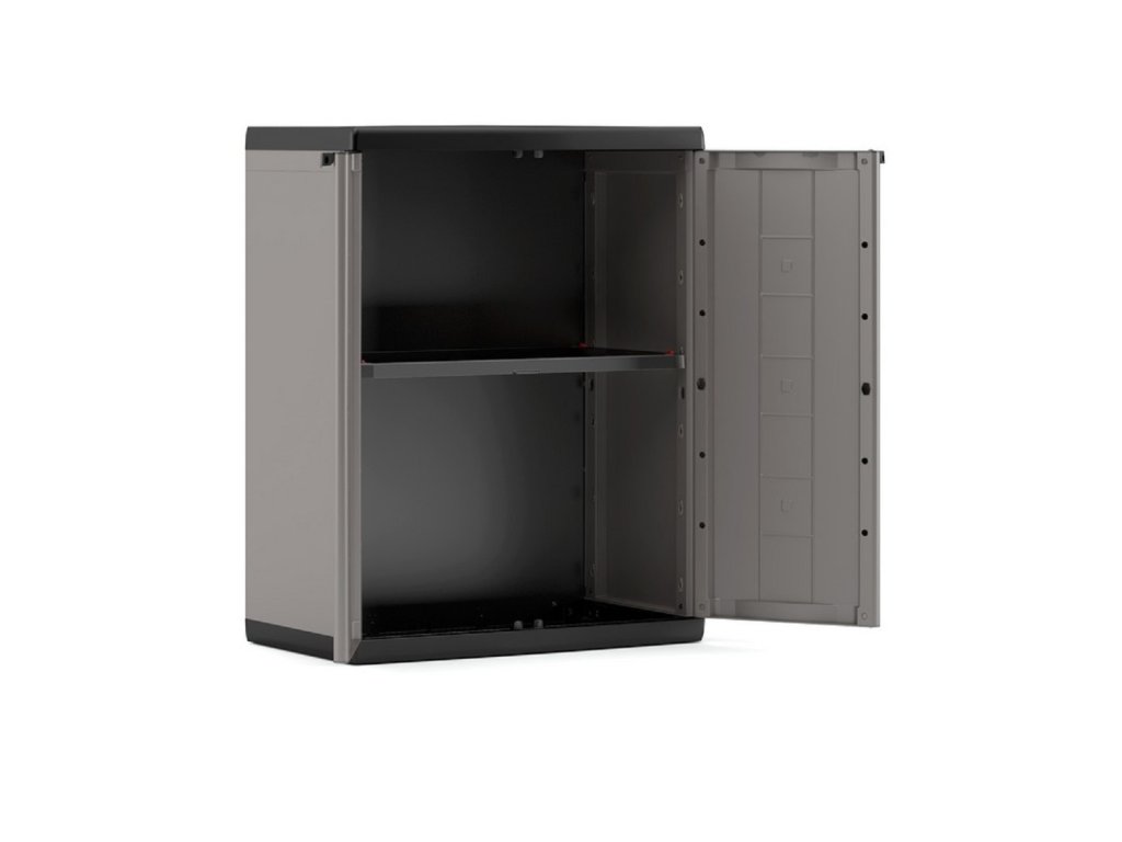 Nízká skříň JOLLY, šířka 68 cm je kompaktní a všestranné úložné řešení do domácnosti, kanceláře i dílny. Nízké provedení se snadno vejde pod okno, vedle pračky nebo do úzkých výklenků, zatímco odolná konstrukce z kvalitního plastu udrží vaše věci v suchu, čistotě a bezpečí.