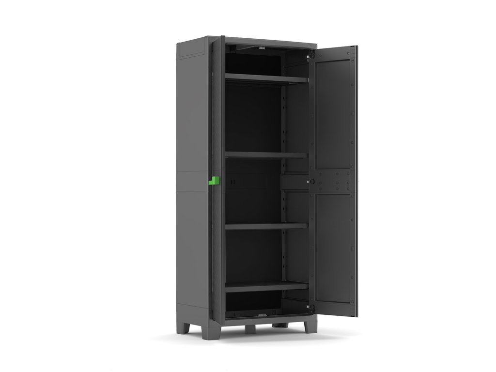 Díky použitému materiálu můžete skříň používat jak v interiéru, tak i exteriéru, kvalitní plast je velmi odolný. díky nastavitelným policím je vnitřní uspořádání přesně podle vašich představ.