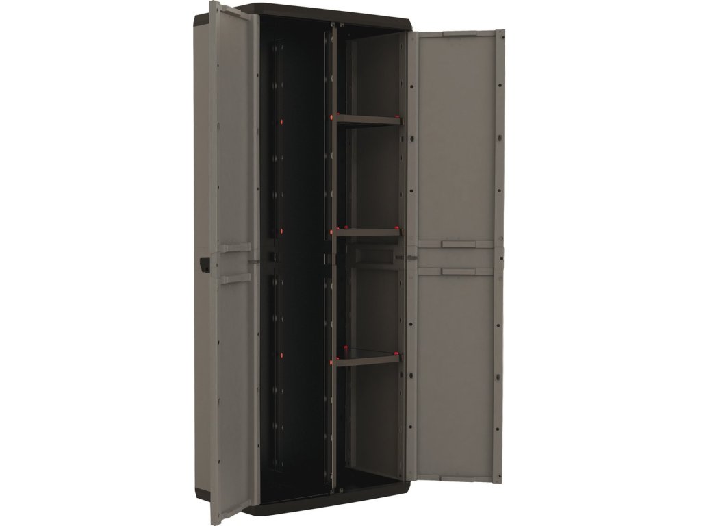 S 3 nastavitelnými policemi, které každá unese až 15 kg, můžete snadno přizpůsobit vnitřní prostor podle svých potřeb. Ať už potřebujete bezpečně uložit nářadí, zahradnické potřeby, sportovní vybavení nebo jiné předměty, tato skříň poskytuje dostatek prostoru a flexibilitu.