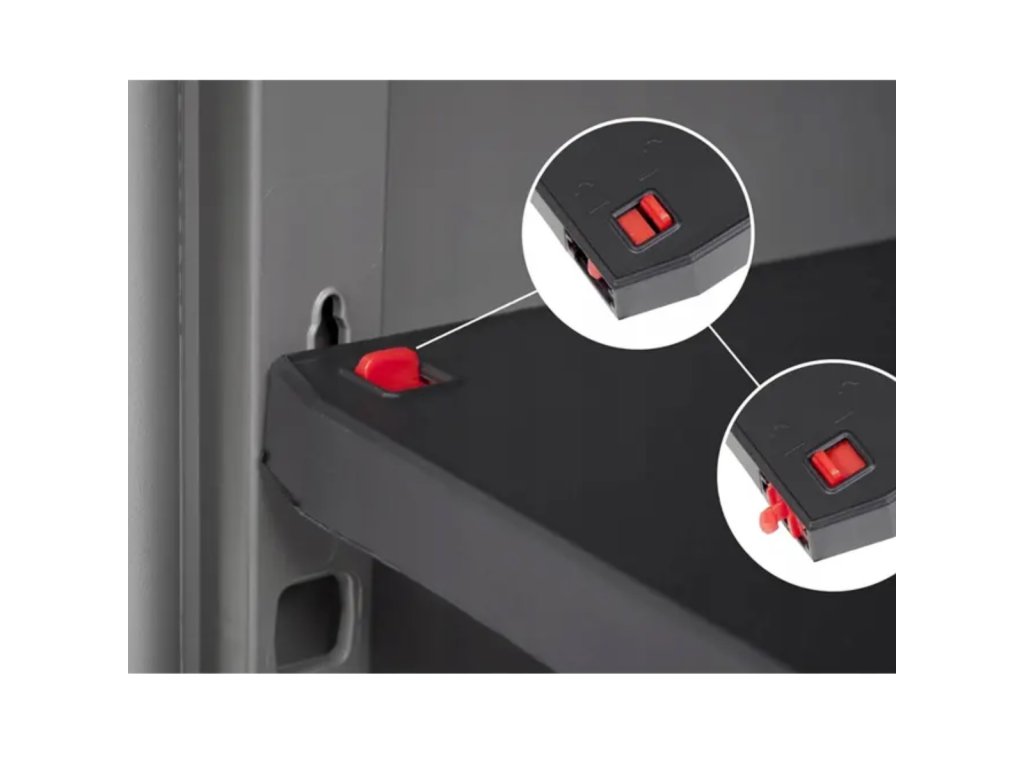 Skříň obsahuje 2 nastavitelné police s nosností až 20 kg, které Vám umožní flexibilně uspořádat prostor podle vašich potřeb. Navíc je opatřena zesíleným dnem díky dvěma středovým nožičkám, které zajišťují extra stabilitu a odolnost i při plném zatížení.