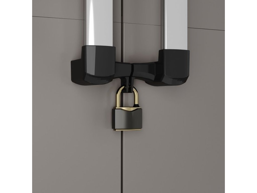 Bezpečnost vašich uložených věcí zaručují uzamykatelné dveře (zámek není součástí balení). Navíc je skříň vybavena elegantními hliníkovými madly, které podtrhují moderní minimalistický vzhled a zároveň usnadňují manipulaci.