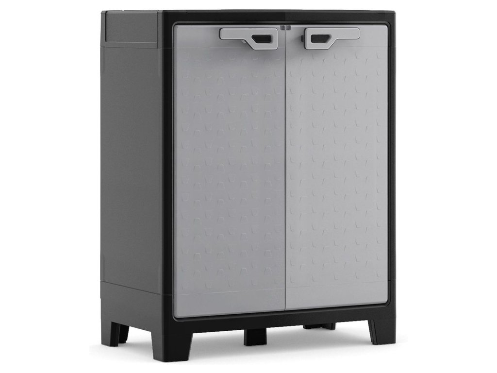 Nízká plastová skříň Titán má rozměry 80 x 100 x 44 centimetrů. Skvělé řešení v podobě inovativního mechanismu, který zaručuje dokonalé uzamykání. Má také zpevněnou základnu. Disponuje dvěma variabilními policemi pro vysoký komfort ukládání věcí uvnitř skříně. Nosnost každé police je 30 kilogramů. Dno pak lze využít taktéž jako polici.