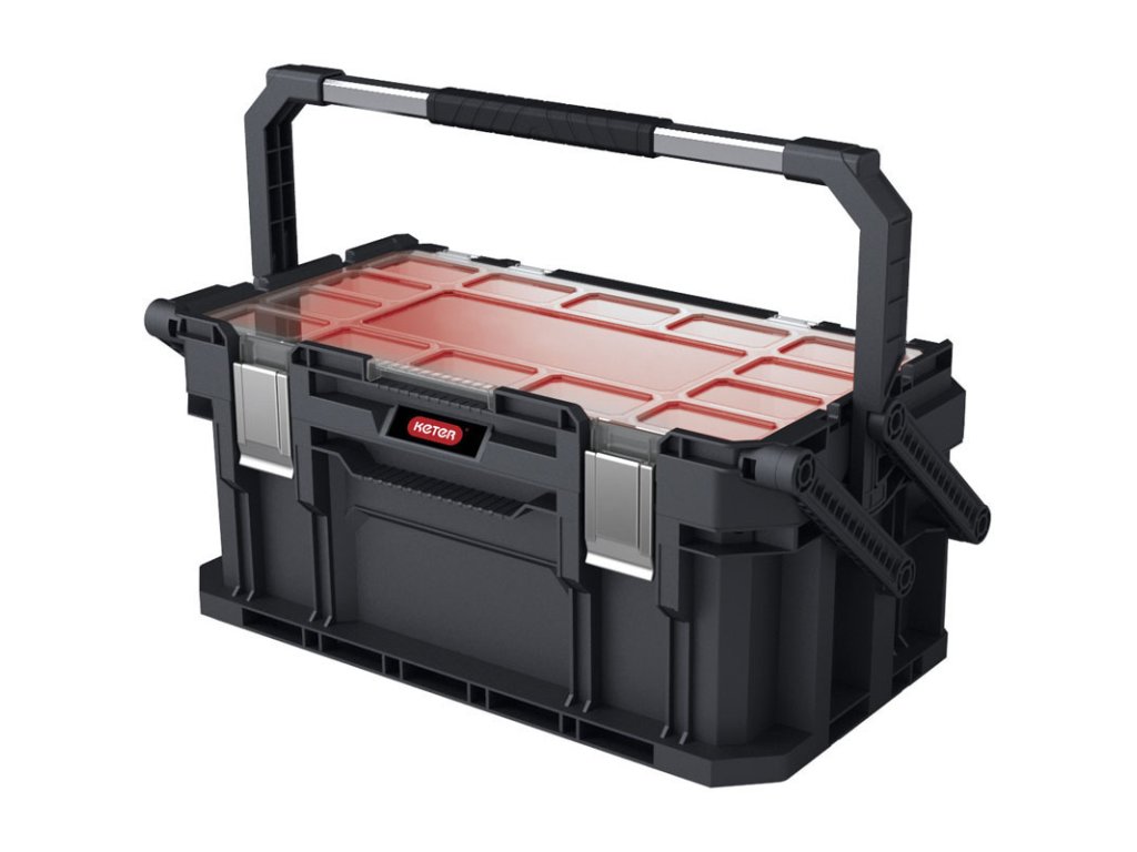 Praktická skříňka na nářadí Smart Cantilever s velkým objemem. Jeho vnitřek umožňuje skladování nářadí různých velikostí. Organizéry uvnitř skříňky usnadňují organizaci práce a zajišťují snadný přístup k potřebnému nářadí. Díky pohodlnému držadlu lze skříňku bez problému přenášet. Velikost 56,5x31,7x25,1cm.